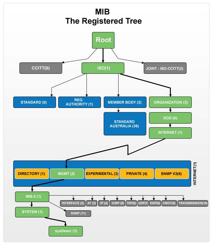 OID مخفف “object identifier” و از اجزای پروتکل SNMP است. OID آدرسی را ارائه می دهد که سیستم می تواند از آن برای شناسایی دستگاه هایی که ادمین ها مدیریت و نظارت می کنند، استفاده کند. OIDها به صورت سلسله مراتبی در MIB ها ترتیب بندی می شوند. همه عناصر قابل مدیریت هر دستگاه در این ساختار سلسله مراتبی گروه بندی شده اند که باعث می شود ادمین ها به راحتی آن ها زیر نظر بگیرند.